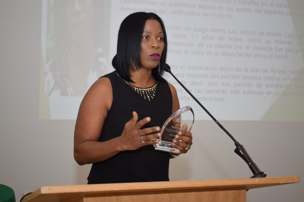 Teresa Durán, la atleta criolla más dominante y galardonada de todos los tiempos entre las figuras notables del deporte dominicano, agradeció a la fundación por la distinción y se lo dedicó a todas las mujeres y a su barriada de Guachupita.