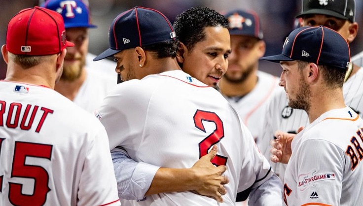 Las acciones comenzaron temprano en la parte baja de la segunda entrada cuando Alex Bregman (Astros de Houston) anota la primera carrera empujado por un doble conectado de Michael Brantley su compañero en Astros.