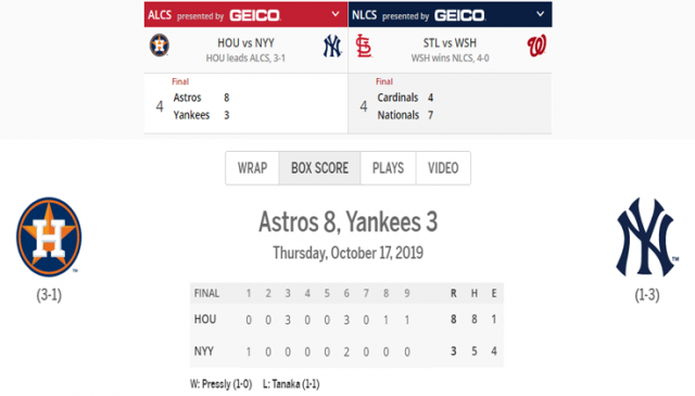 Este jueves 18 de octubre, los más de 46 mil fanáticos que asistieron al Yankee Stadium, sufrieron una amarga derrota ante los Astros de Houston, en la cual la ofensiva texana supo capitalizar 4 errores (2 Le Mahieu, 2 Torres) de la defensiva Yankee, y transformarlas en carreras oportunas de los bates que se han mantenido dormidos en esta serie, para liquidar el partido con 8 carreras por 3.