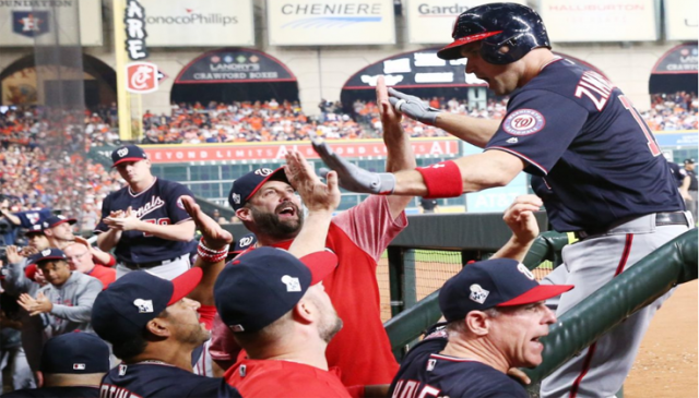 ¡Deléitense con el primer HR de la #SerieMundial. . . claro que es de Ryan Zimmerman! 💣#LosNacionales // #STAYINTHEFIGHT pic.twitter.com/8KwCkP20yb