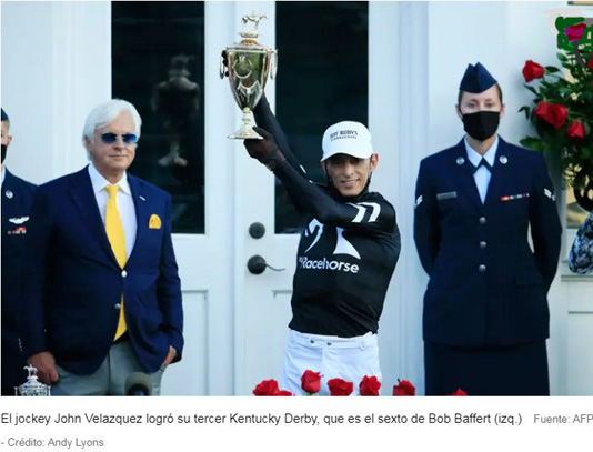 El jockey John Velázquez, la leyenda puertorriqueña de 48 años, líder de todos los tiempos en dinero producido ($ 422,966,622 ) gana el premio número 200 tipo Grado 1 de su carrera y su tercer Kentucky Derby: