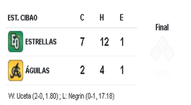 Estrellas Orientales vencen por segunda vez a las Águilas 7×2.