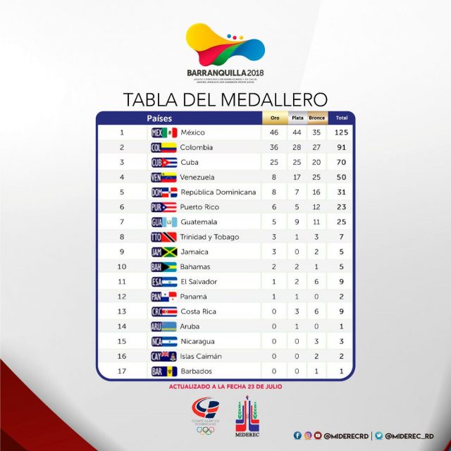 Medallero actual – 24 de julio